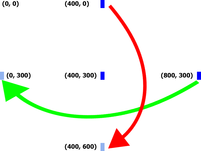 Essentially to make the blue pixel teleport to the opposite borders upong detecting boundries collision, we simply detect when the pixel reaches, say the right most border which is x = 800, then we simple move (teleport) the location of the pixel to x = 0.